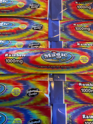 Classic rainbow gummy made with nerd candies and 1000mg of psilocybin mushrooms sharing recommended.